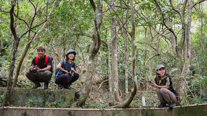 我們踏入歷史悠長的山徑,探索跨越清朝、日治至民初的文化軸線。沿途可見清朝遺留下的古跡與民初外賓招待所遺址,如游泳池、招待所,每一磚一瓦都低語著歲月故事。如今,這些遺址隨著時間慢慢被植物依附、纏繞、覆蓋,成為山林裡的獨特景象。