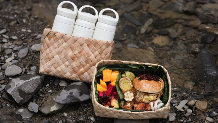 來到貫穿大武鄉與達仁鄉的茶茶牙頓溪畔,品嚐返鄉青年「CINEVUAN 去那呼玩」準備的輕食餐盒。餐盒以烘焙品為主,包含菇菇蛋紅藜洛神貝果、鹽麴雞腿排佐洋蔥,以及當季鮮蔬水果,搭配月桃餐盒與藤編背簍盛裝。席間將雙腳浸入沁涼溪水,邊感受溪水涼意,邊享受美味食材,體驗雙重愉悅。